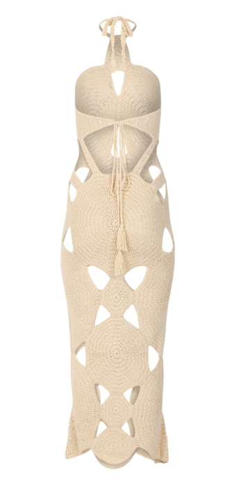 Introducing the stunning Grand Cayman Cutout midi dress - the perfect statement piece. This halter neck midi features a captivating cut out design and sophisticated silhouette. Crafted with figure-hugging crochet knit fabric, it effortlessly accentuates the curves while the midi length elongates the legs. Enjoy unrestricted movement in this alluring and elegant fashion choice.